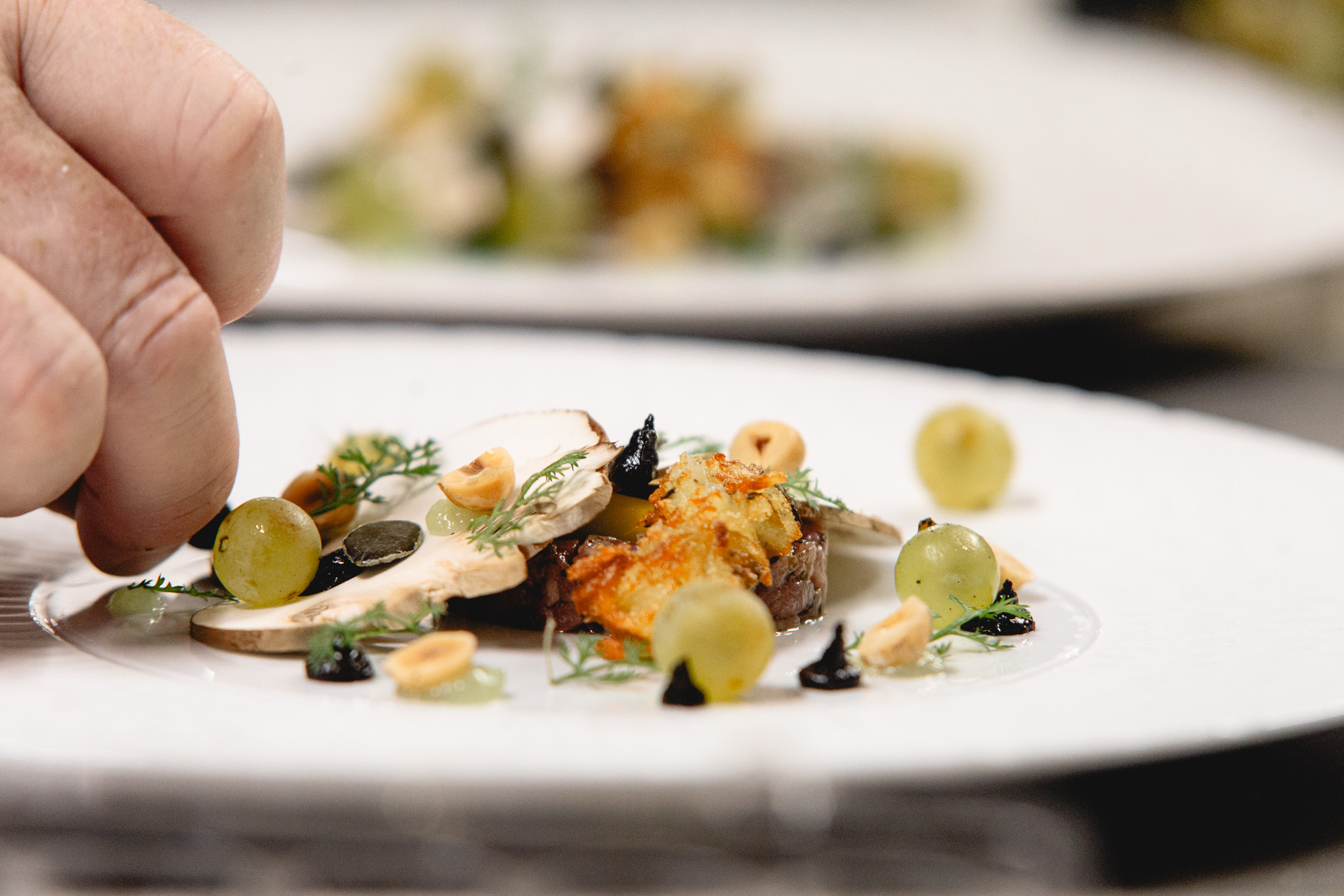 Iberischer Bellota-Schinken & Morcheln in der Sahne von „Château-Chalon“.