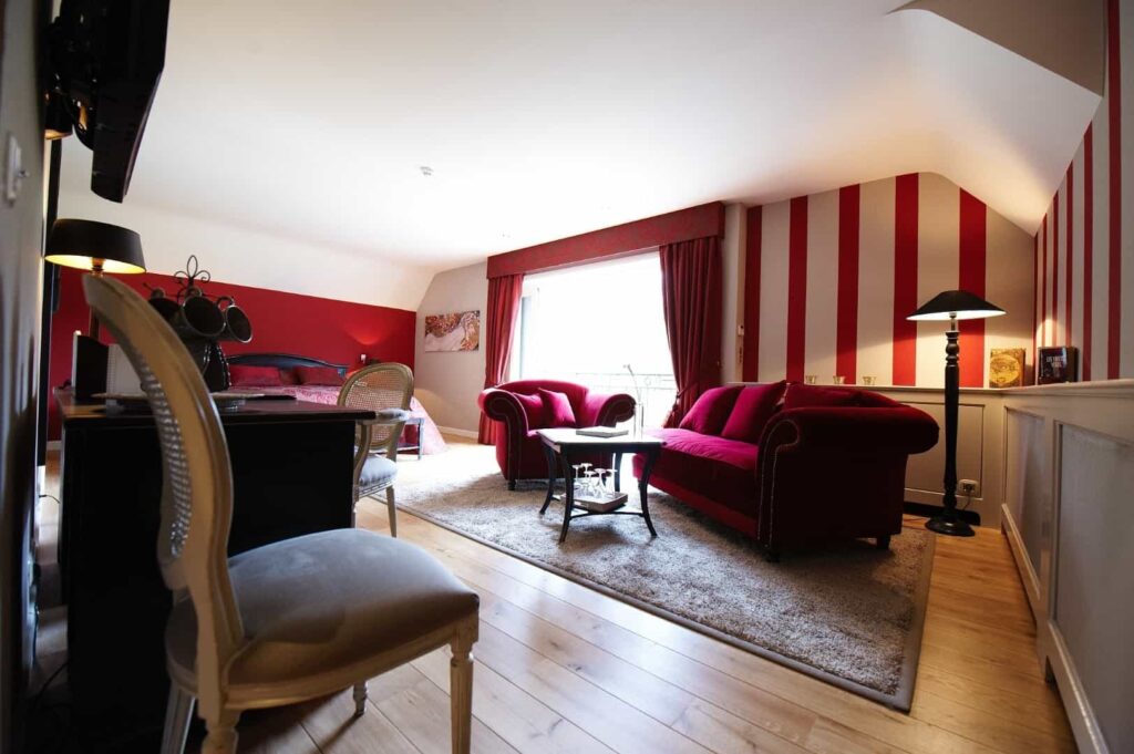 Onze acht kamers en suites genieten van de charme, de eisen en de faciliteiten van een luxe-etablissement. Het uitzicht op het beboste park biedt een perfecte rust.